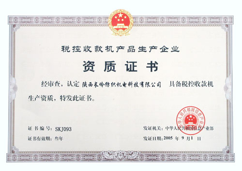 我公司具備良好的生產(chǎn)管理和產(chǎn)品研發(fā)條件,經(jīng)過近半年的資質(zhì)申請,各項指標(biāo)符合生產(chǎn)企業(yè)資質(zhì)審查要求,順利通過了信息產(chǎn)業(yè)部專家組的現(xiàn)場審核。經(jīng)專家評審、現(xiàn)場核查和網(wǎng)上公示,9月1日,正式認(rèn)定包括陜西長嶺紡織機電科技有限公司在內(nèi)的10家企業(yè)基本具備稅控收款機產(chǎn)品生產(chǎn)資質(zhì),并予以公布。目前,公司正加緊做好下一步生產(chǎn)的各項準(zhǔn)備工作。