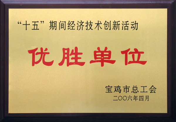 在日前寶雞市總工會召開的當(dāng)好主力軍、建功“十一五” 職工經(jīng)濟技術(shù)創(chuàng)新工作動員大會上,我公司作為寶雞市“十五”期間職工經(jīng)濟技術(shù)創(chuàng)新優(yōu)勝單位受到表彰,紡研所系列產(chǎn)品主管郭紅生被授予創(chuàng)新標(biāo)兵的光榮稱號。