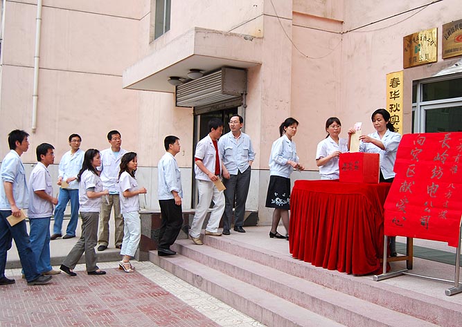 為了給予災區(qū)人民及時救助,公司工會向全體員工發(fā)起抗震救災捐款倡議,號召大家為災區(qū)人民捐款捐物,用點滴愛心,匯成無限的真情,為災區(qū)人民貢獻一份力量;用實際行動支援災區(qū)人民!并于5月16日下午,舉行了“一方有難 八方支援”為主題的抗震救災捐款儀式。在公司總經(jīng)理薛冬泉的帶頭下,紡電公司487位員工紛紛解囊,捐款的隊伍排成了長隊,截止到5月19日長嶺紡電公司職工共捐款39601元。目前此筆捐款已通過集團工會轉(zhuǎn)交寶雞市救災募捐辦公室。