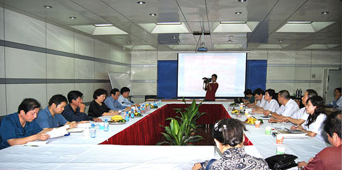 在匯報(bào)會(huì)上,副總經(jīng)理魏寧賢對(duì)各位領(lǐng)導(dǎo)和專家的到來(lái)表示歡迎,并對(duì)公司和工程中心的的基本情況作了介紹??偣こ處焻沃救A對(duì)工程中心的項(xiàng)目進(jìn)展情況、取得的科技成果、資金使用情況、與工程中心共建單位西安工程大學(xué)產(chǎn)、學(xué)、研結(jié)合的體會(huì)和經(jīng)驗(yàn)等作了詳細(xì)匯報(bào)。檢查組對(duì)工程中心計(jì)劃的項(xiàng)目產(chǎn)品進(jìn)行了實(shí)地了解,對(duì)項(xiàng)目財(cái)務(wù)情況進(jìn)行了核查。邱廳長(zhǎng)及檢查組其他成員對(duì)工程中心的項(xiàng)目進(jìn)展和資金到位情況表示滿意,對(duì)工程中心運(yùn)行過(guò)程中存在的一些具體問(wèn)題也提出了要求,希望在項(xiàng)目驗(yàn)收前不斷得到完善,真正促使“陜西省紡織測(cè)量與控制工程技術(shù)中心”成為國(guó)內(nèi)紡織機(jī)電行業(yè)開(kāi)放的技術(shù)創(chuàng)新平臺(tái),為整個(gè)行業(yè)的技術(shù)進(jìn)步做出貢獻(xiàn)。