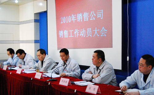 會上,銷售公司經理張寶生對2009年銷售公司工作從七個方面進行了總結,對工作中存在的不足和亟待解決的問題提出了工作措施,并就全面完成公司下達的2010年銷售回款任務進行了全面動員。針對2010年市場同質化競爭加劇的市場情況,公司將合理調整銷售和服務片區(qū),提高工作效率,降低銷售成本,全面推行銷售服務一體化模式,嚴格考核,加大產品銷售結構調整力度,完善各項管理制度,各項工作要做到精、細、實,不斷鞏固和提升產品市場占有率。