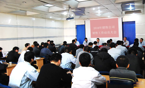 2月20日,公司召開2010年銷售工作動員大會,全面總結2009年度銷售工作,安排部署2010年銷售任務,并就全面完成全年銷售任務進行動員。全體銷售及服務人員參加會議,公司總經理薛冬泉、黨總支書記高金寬參加會議并作重要講話。