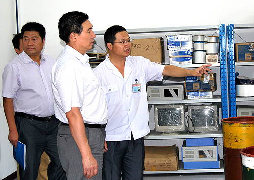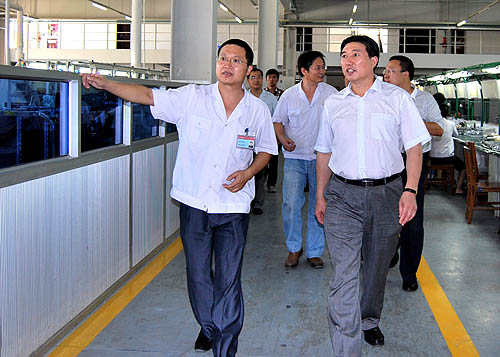 市委常委、組織部部長喬軍率寶雞市十二縣區(qū)主管人才工作的領導,在公司總經(jīng)理薛冬泉的陪同下,參觀了產(chǎn)品陳列室、紡研所實驗室、技術研究中心、紡織電子產(chǎn)品總裝車間、恒溫恒濕實驗室,對公司生產(chǎn)經(jīng)營情況、新產(chǎn)品研發(fā)、人才隊伍建設的情況進行了解。薛冬泉總經(jīng)理對公司發(fā)展歷程、產(chǎn)品技術創(chuàng)新情況、人才隊伍建設以及長嶺紡電工業(yè)園的基本情況做了介紹。