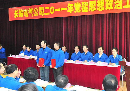 2011年3月1日在長嶺電氣召開了公司2011年黨建思想政治工作會議。紡電公司全體中層以上領導、各分會主席、團支部書記參加了會議。