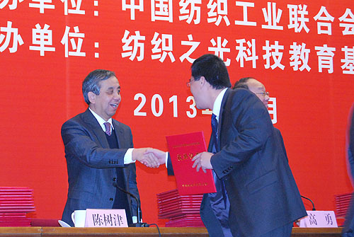表彰會上,中國紡織工業(yè)聯(lián)合會高勇副會長宣布了2013年度中國紡織工業(yè)聯(lián)合會科學(xué)技術(shù)獎獲獎名單;副會長孫瑞哲作重要講話,代表中國紡織工業(yè)聯(lián)合會向全體獲獎企業(yè)和人員表示熱烈祝賀,他說,世界經(jīng)濟競爭格局發(fā)生了深刻變化,當(dāng)前和今后一段時期紡織科技創(chuàng)新與人才培養(yǎng)面臨新的機遇與挑戰(zhàn),希望全行業(yè)滿懷信心,把握大勢,塑造紡織科技創(chuàng)新與人才培養(yǎng)新優(yōu)勢。