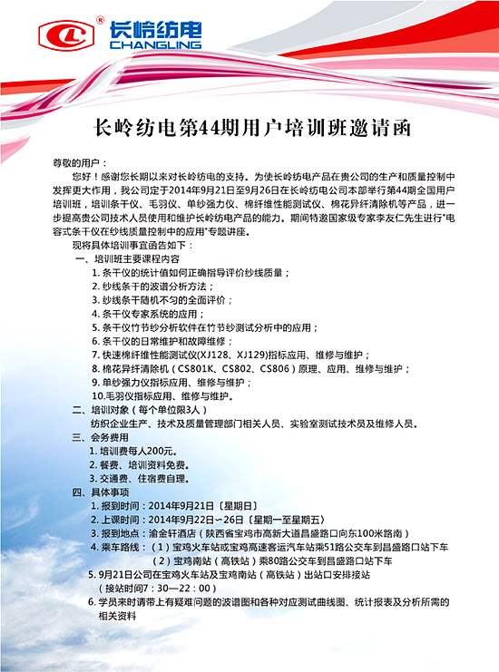 長(zhǎng)嶺紡電第44期用戶(hù)培訓(xùn)班邀請(qǐng)函