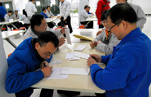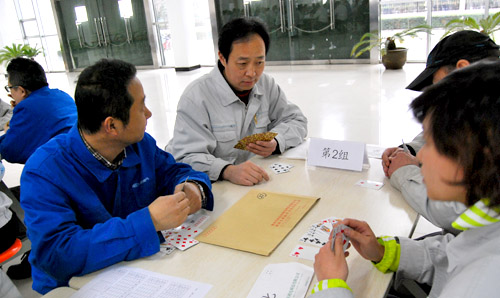 正月十四,一場(chǎng)久違的瑞雪帶來了節(jié)日的喜慶與祝福。紡電公司根據(jù)電氣公司的鬧元宵活動(dòng)安排,動(dòng)靜結(jié)合,在職工餐廳舉行了“智力撲克比賽”。本次比賽由8個(gè)分會(huì)9個(gè)參賽隊(duì)108人參賽,為了使本次比賽公平公正也更能體現(xiàn)參賽者的技術(shù)水平,組委會(huì)借鑒其他賽事,制定了新的比賽規(guī)則,要求每1桌分別使用相同的27付牌型,且東南西北四個(gè)方向位置不變,經(jīng)過2個(gè)多小時(shí)的激烈比賽,紡研所、織機(jī)制造部、紡電制造部分獲團(tuán)體前三名,陳玉國(guó)、徐立、常寧、楊萌獲四大最佳牌手。