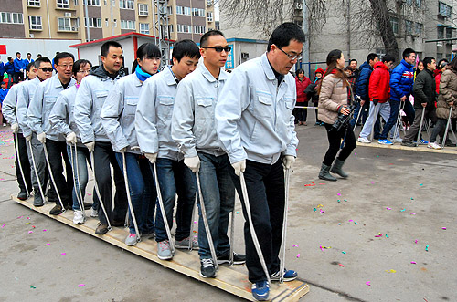 正月十五,長(zhǎng)嶺職工鬧元宵活動(dòng)在文化廣場(chǎng)舉行,在四名紡電員工參演的《相親相愛》歌聲中拉開序幕。趣味游戲比賽中,紡電公司領(lǐng)導(dǎo)與職工一起,大家齊心協(xié)力,共同完成了“齊心協(xié)力、10人11足、抱球跑接力、撈元宵接力”等游藝活動(dòng),場(chǎng)面緊張激烈,加油聲此起彼伏。紡電公司組成了四個(gè)隊(duì)參加競(jìng)技比賽活動(dòng),最終獲得了“10人11足”項(xiàng)目第一名、撈元宵接力第二名的好成績(jī),充分展現(xiàn)了紡電人積極進(jìn)取的團(tuán)隊(duì)精神。