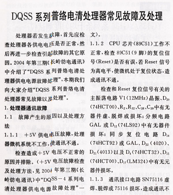 DQSS系列普絡(luò)電清處理器常見(jiàn)故障及處理