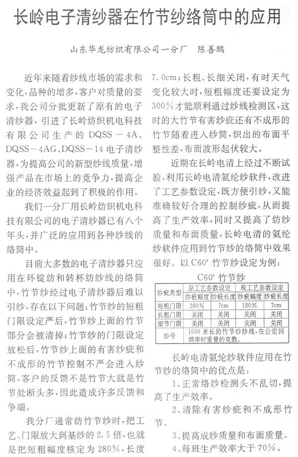 長嶺電子清紗器在竹節(jié)紗絡(luò)筒中的應(yīng)用