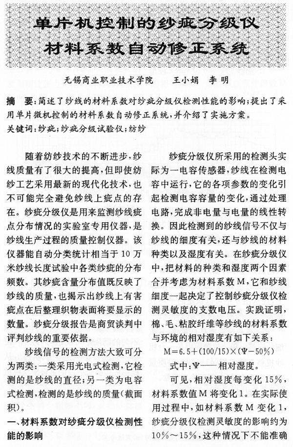 單片機(jī)控制的紗疵分級(jí)儀