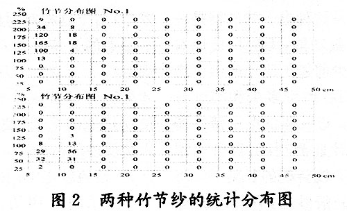 作為一種特殊的紗線,我們無(wú)法用常規(guī)紗線的測(cè)試指標(biāo)來(lái)考核評(píng)價(jià)竹節(jié)紗,測(cè)試竹節(jié)紗的CVm%值一般很大,竹節(jié)紗的竹節(jié)長(zhǎng)度遠(yuǎn)遠(yuǎn)超過(guò)了常規(guī)條干儀所定義的疵點(diǎn)范圍,正常的測(cè)試指標(biāo)對(duì)于控制竹節(jié)紗質(zhì)量根本沒(méi)有意義,需要探討一種新的竹節(jié)紗質(zhì)量控制方案。