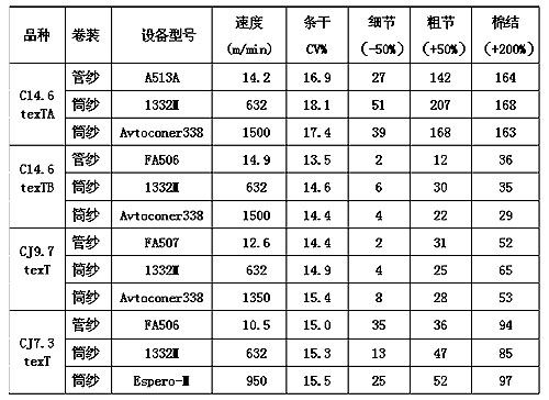 1.2 樣品選?。罕驹囼炦x取四個品種:C14.6texT、CJ14.6tex、CJ9.7texT、CJ7.3texT。為減少不同樣品的離散性對試驗結(jié)果的影響,分別從相應細紗機的同一個錠子上連續(xù)抽取三管細紗,再從中取二個管紗分別用普通絡筒機與全自動絡筒機絡成筒紗。