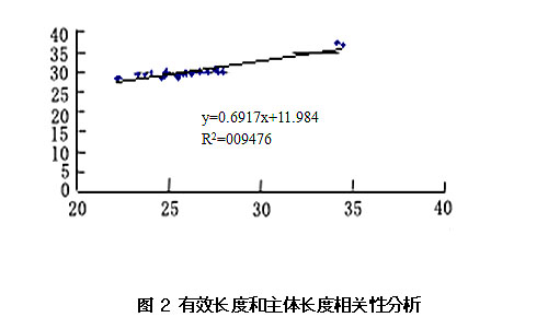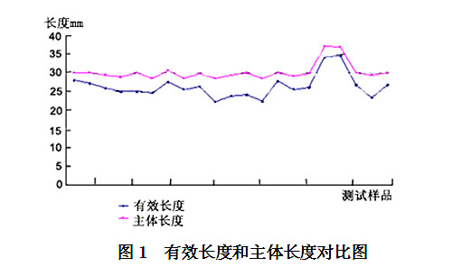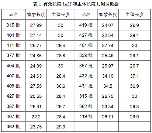 由于有效長度Leff和主體長度Lm的定義不同,所以測試結(jié)果也不完全相同,從圖1及圖2所做的相關性分析可以看出,二者具有良好的相關性。