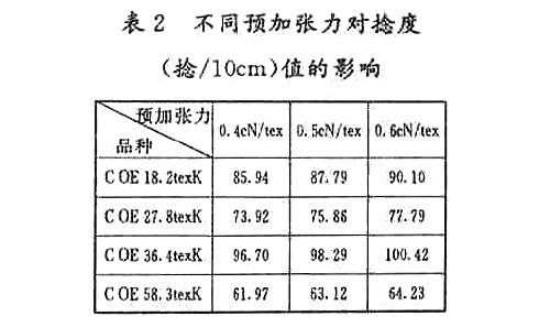 2 根據(jù)不同線密度與不同設(shè)計捻度施加不同的預(yù)加張力