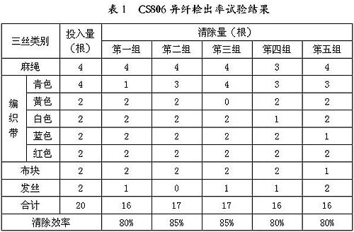 從表1的5組試驗(yàn)數(shù)據(jù)中可以看出,CS806棉花異纖清除機(jī)識(shí)別和檢出異纖的能力穩(wěn)定,各類異纖的綜合檢出率不低于80%。