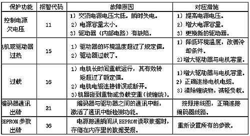 二、若LED閃爍顯示相應的報警代碼,查找原因及解決方法見下表。