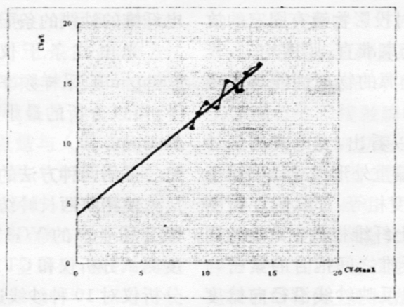 通過對測試結(jié)果的回歸分析(參見圖3),可得出如下的相關(guān)關(guān)系表達(dá)式: