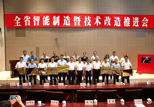 為貫徹落實《中國制造2025》,《中國制造2025陜西實施意見》,陜西省把智能制造作為制造業(yè)發(fā)展的主攻方向,以智能制造試點示范為引領(lǐng),重大發(fā)展關(guān)鍵智能制造技術(shù)裝備,力促智能制造新產(chǎn)業(yè)實現(xiàn)規(guī)?;l(fā)展,到2020年,省級智能制造試點示范企業(yè)達到100家以上,并將給予企業(yè)項目資金支持和稅收優(yōu)惠。此次被列入陜西省第一批省級智能制造試點示范的企業(yè)均為陜西省在智能化、自動化建設(shè)方面有代表性、示范性的企業(yè),公司總經(jīng)理雷濤參加會議并獲授牌。
